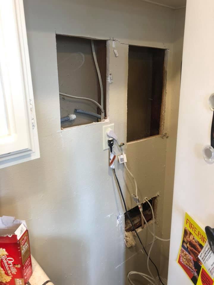 私は土曜日遅くに目が覚め、シャワーを浴び、私の台所に行きました。スパッシュ!見よ、突然、足が濡れた!見下ろすと床に大きな水たまりがありました。「雨が降ると土砂降りになる」と私は独り言を言った。何てことだ。最初は、冷蔵庫に問題があるのではないかと思いました。しかし、私が水を乾燥させたとき、キャビネットの下から冷蔵庫の左側にもっと多くの水が浸み出ました。それは不思議でした。別の幽霊?そのエリアの床下のパイプは考えられませんでした。台所の壁の後ろにあるバスルームのエリアを見たところ、そこは乾燥していた。