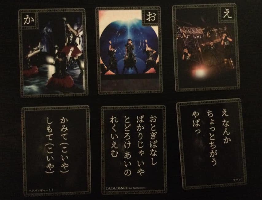 ベビーメタルのかるたのカードがあと6枚! また、ここにゲームボードの写真があります。すごい!