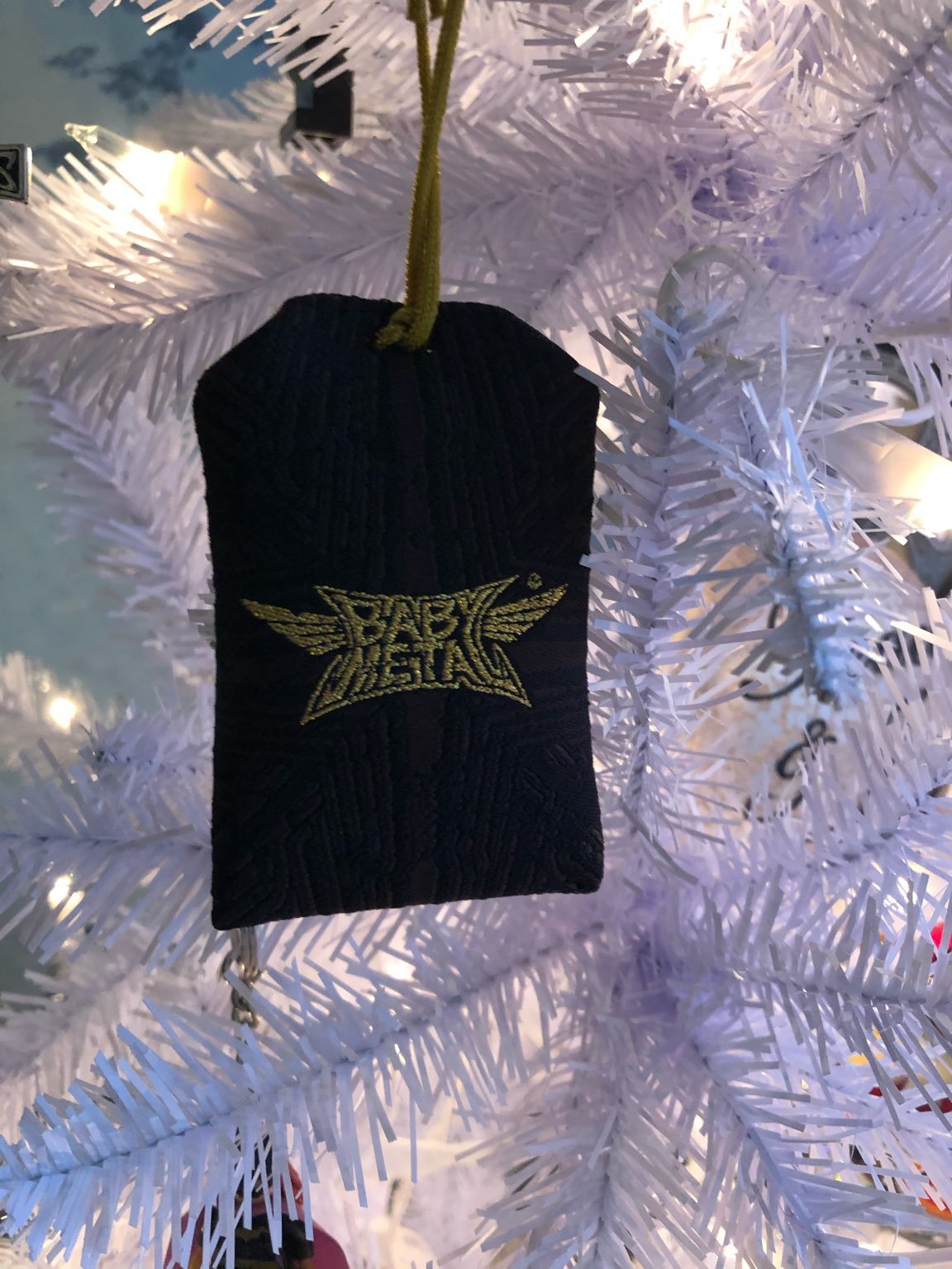 私は先週ブログエントリーを書きませんでした。 先週はちょっと遅い週でした。しかし、先週何かクールなことが起こりました!ベビーメタルの新商品が届きました! わーい!アイテムの一つは、特別な神道のお守りのように見えます。2019年に伊勢で買ったチャームのようです。クリスマスツリーに吊るしました。 きれいそう!とても嬉しかったです。新しいベビーメタルのTシャツも受け取りました。 最近の武道館公演を記念したTシャツでした。普段、参加しなかったコンサートのTシャツは購入していません。このTシャツは素晴らしかったので、私はそのルールに例外を設けました。