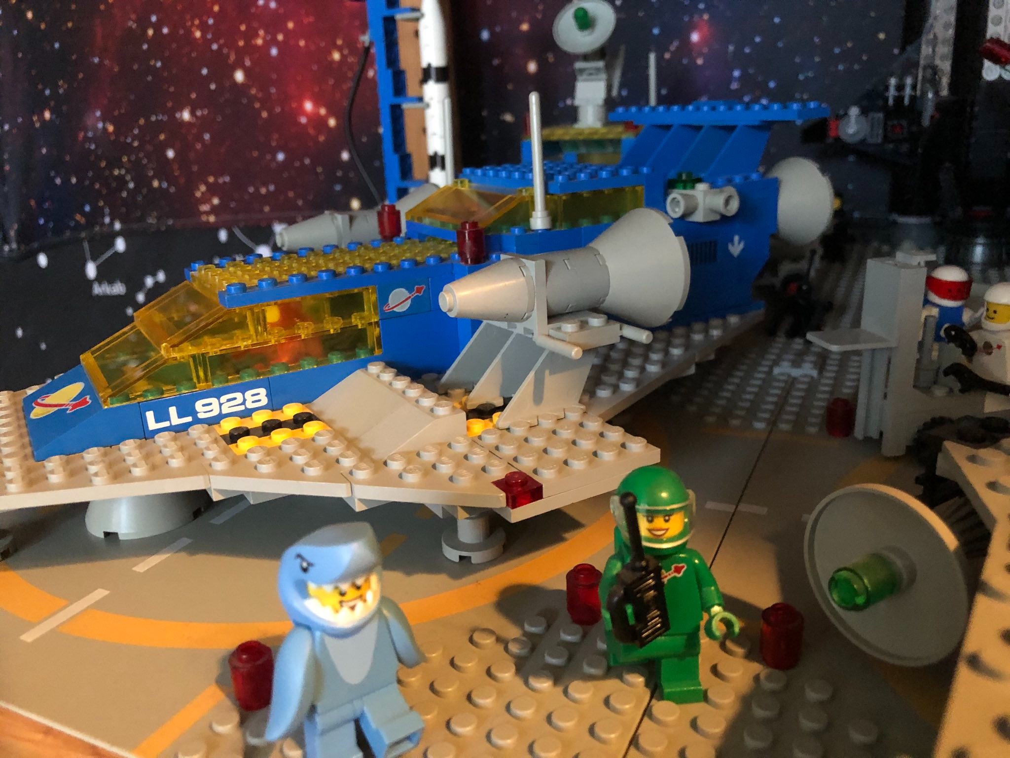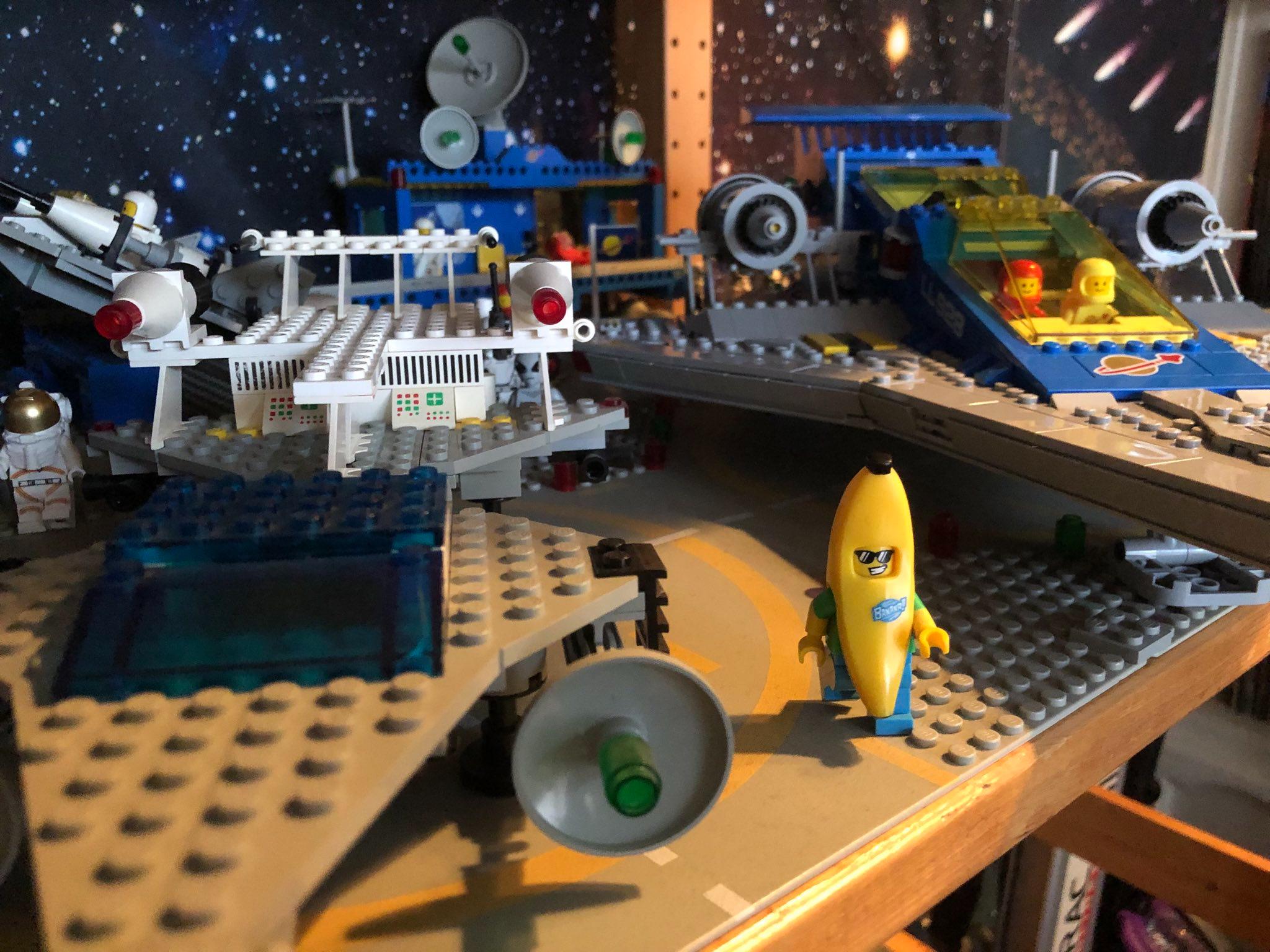 ギザの大ピラミッドが今日届きました! 私はそれを構築することに興奮しています! これは、新しいレゴ ギャラクシー エクスプローラー宇宙船と他のレゴ宇宙船の写真です。 バナナマンかっこいい! これは、1979 年のオリジナルのギャラクシー エクスプローラーの隣にいるシャークマンと女性宇宙飛行士です。