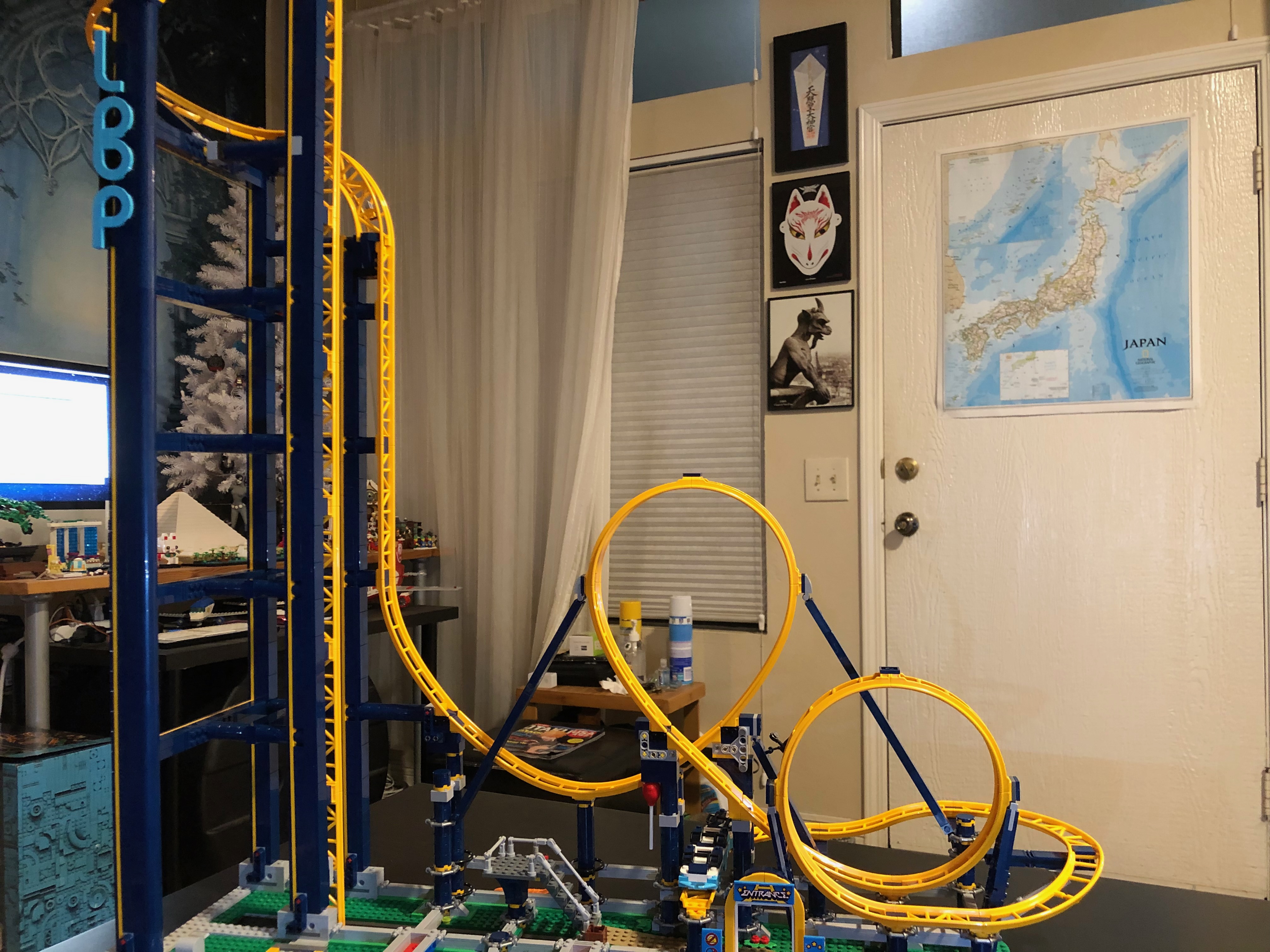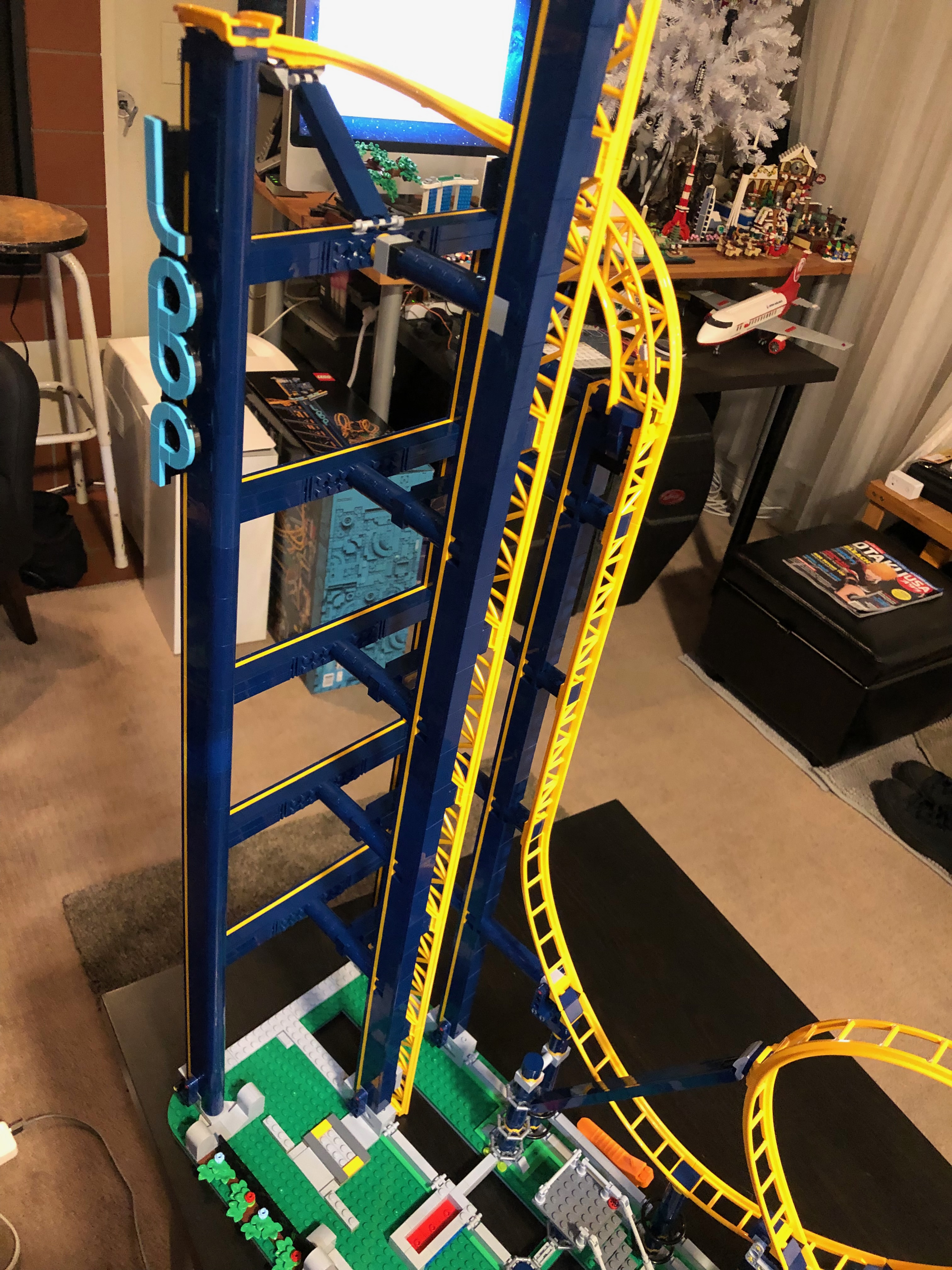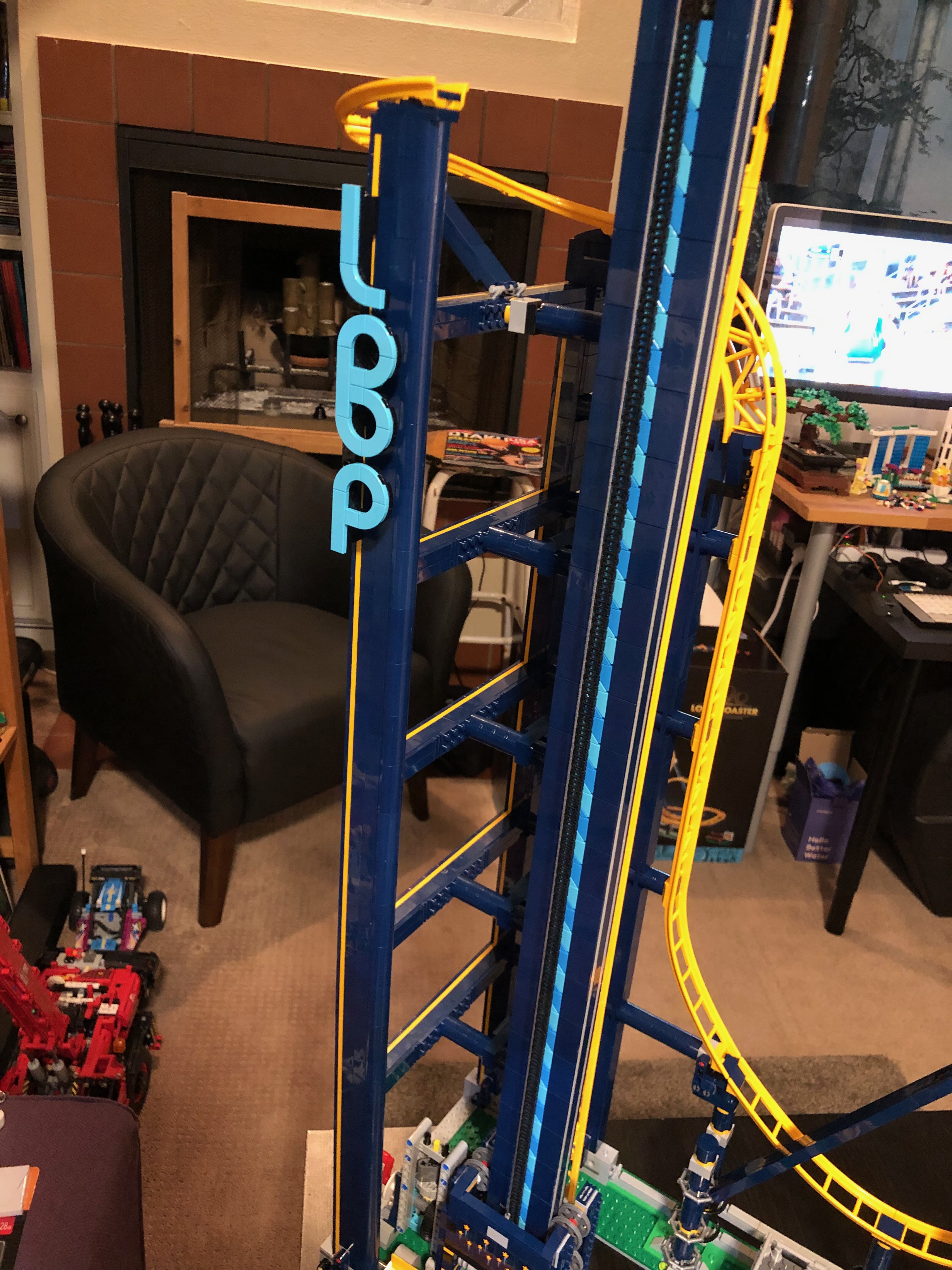 この新しいレゴセットにとても満足しています!ご覧のとおり、たくさんの写真を撮りました!もちろん、これにはビデオによるデモンストレーションが必要です。完成したらどこに飾ろうか迷いました。最も簡単な選択は、私の imac コンピューターを移動して、これをその場所に置くことでした。(今、私のコンピューターは床の小さな箱の上に置かれています。おっと! どこに置くべきかわかりません。)