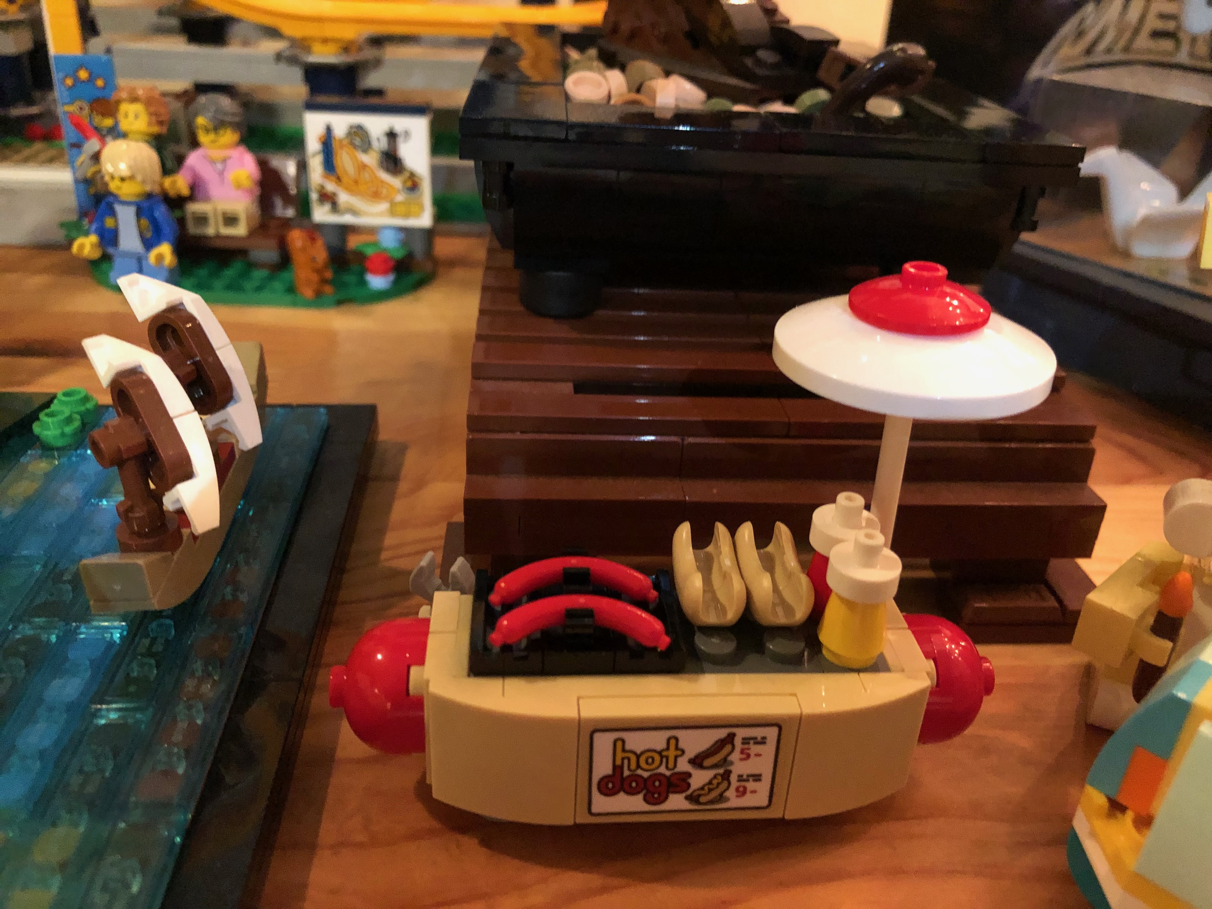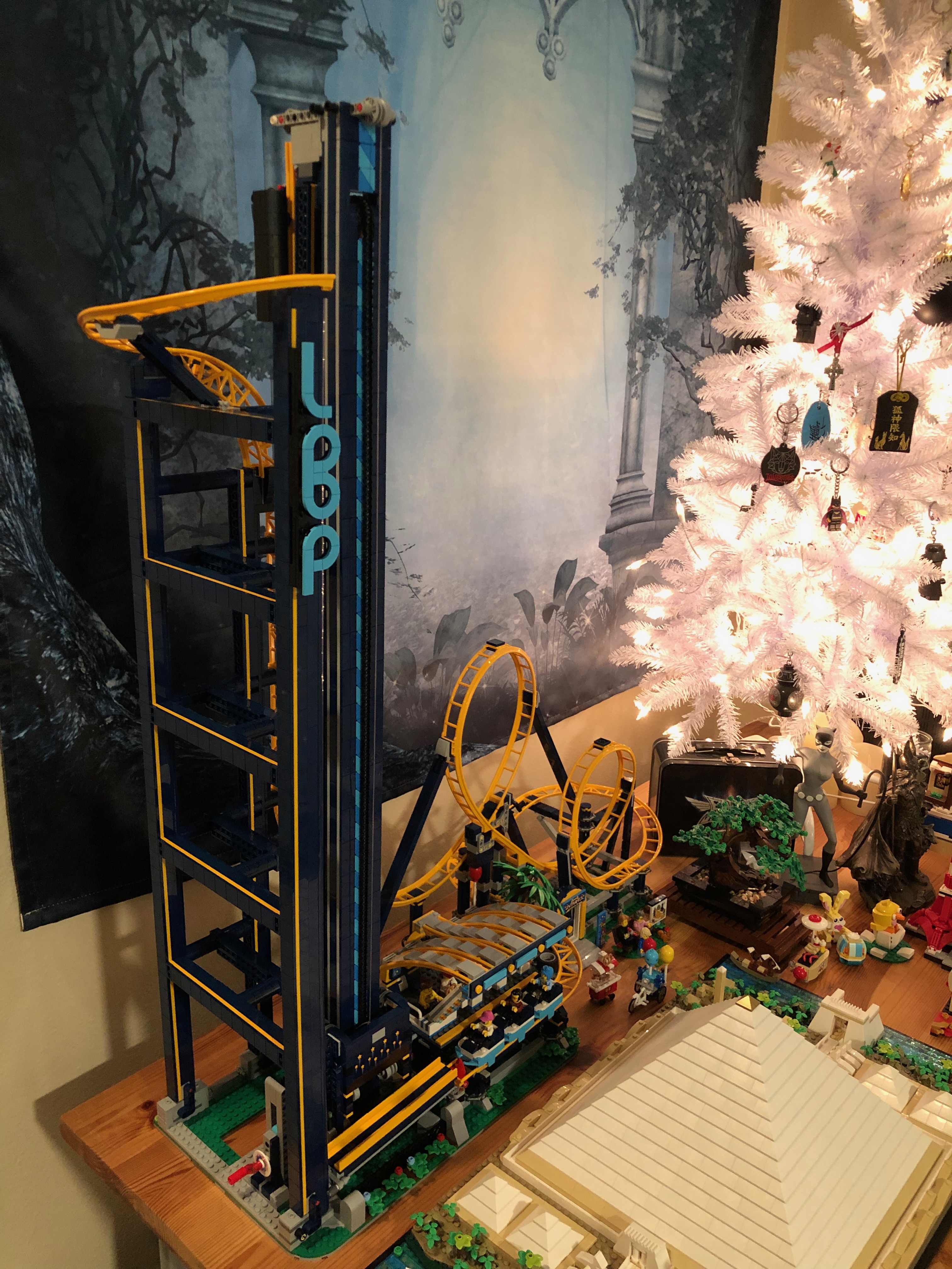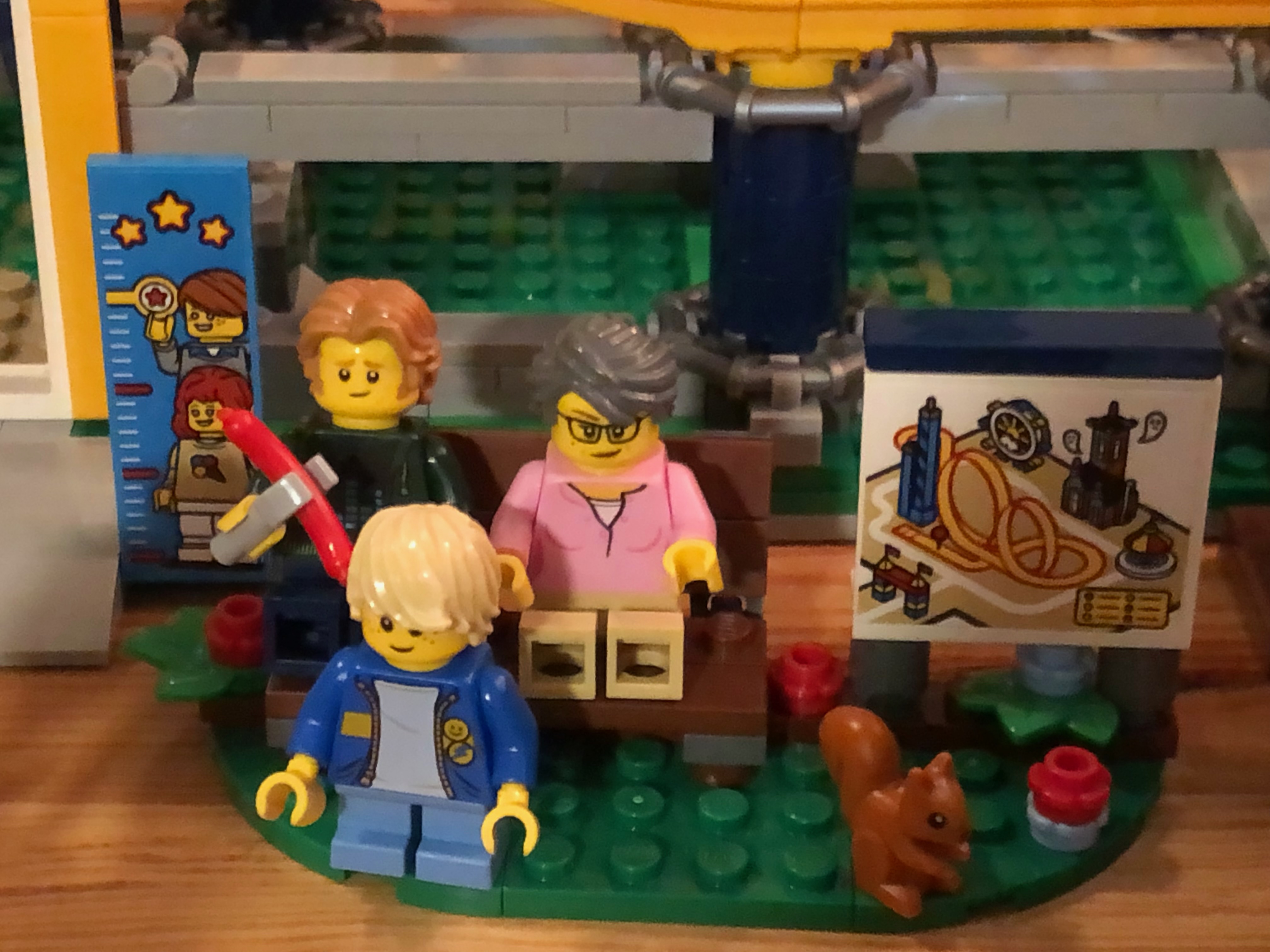 この新しいレゴセットにとても満足しています!ご覧のとおり、たくさんの写真を撮りました!もちろん、これにはビデオによるデモンストレーションが必要です。完成したらどこに飾ろうか迷いました。最も簡単な選択は、私の imac コンピューターを移動して、これをその場所に置くことでした。(今、私のコンピューターは床の小さな箱の上に置かれています。おっと! どこに置くべきかわかりません。)