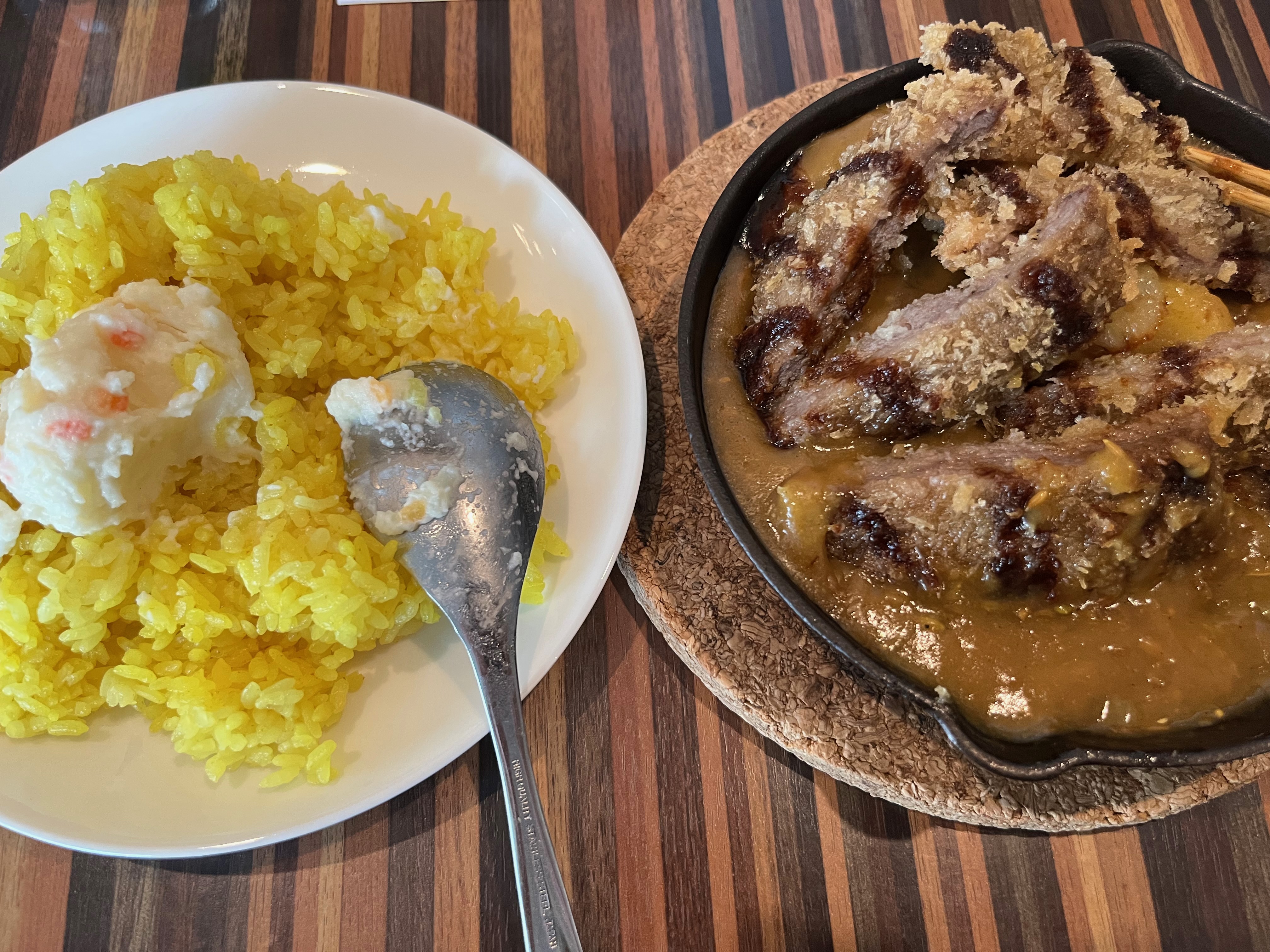 小野山公園を散策しているとお腹が減ってきました。私は最終的に最初の日本食レストランに行くことを知っていました! 私は何を食べるべきか分かりませんでした。一番いいのは、スマートフォンを使って近くにあるレストランを確認することです。 そしてもちろん、レストランをカテゴリ別に表示することもできます。カレーがいいなと思いました。ということで、かなり海辺に近いカレー屋さんを発見。その店名は「まかとカレー」。馬カレーカツをいただきました。大変美味しかったです!